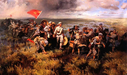 于是你会看到,在闽北、井冈山和瑞金,只要有他们在的地方,虽不缺少挫折和迷茫的往复,却没有面对失败的绝望;你可以看到文工团的同志们在齐腰深的雪里鼓舞士气,可以看到川西草地泥泞间那枚金色的鱼钩……总之,他们的队伍,早已从笑看同胞赴死的麻木中醒了过来。